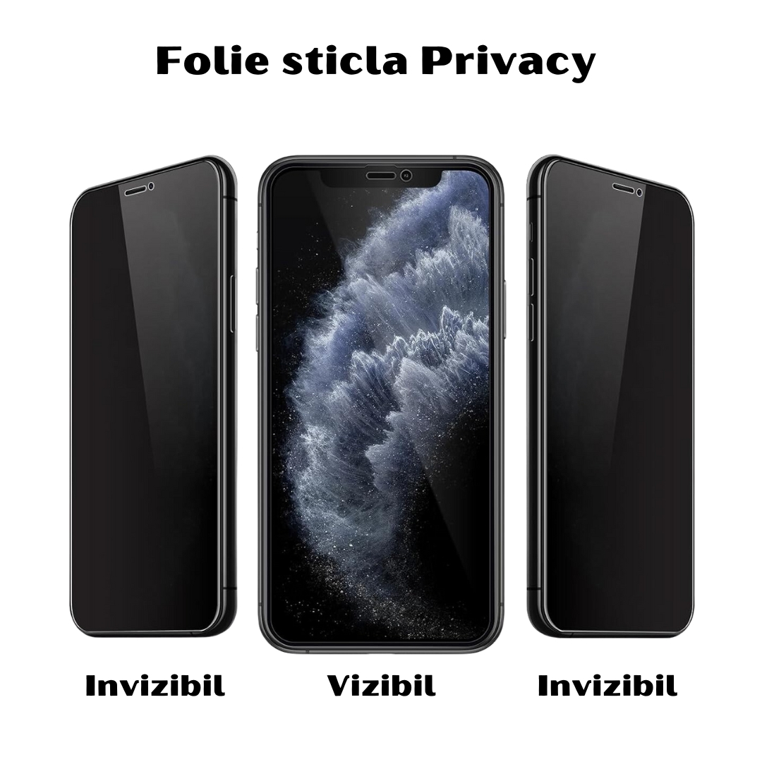 Continut Pachet: 1 x Folie sticla Privacy + 1x Kit montare folie