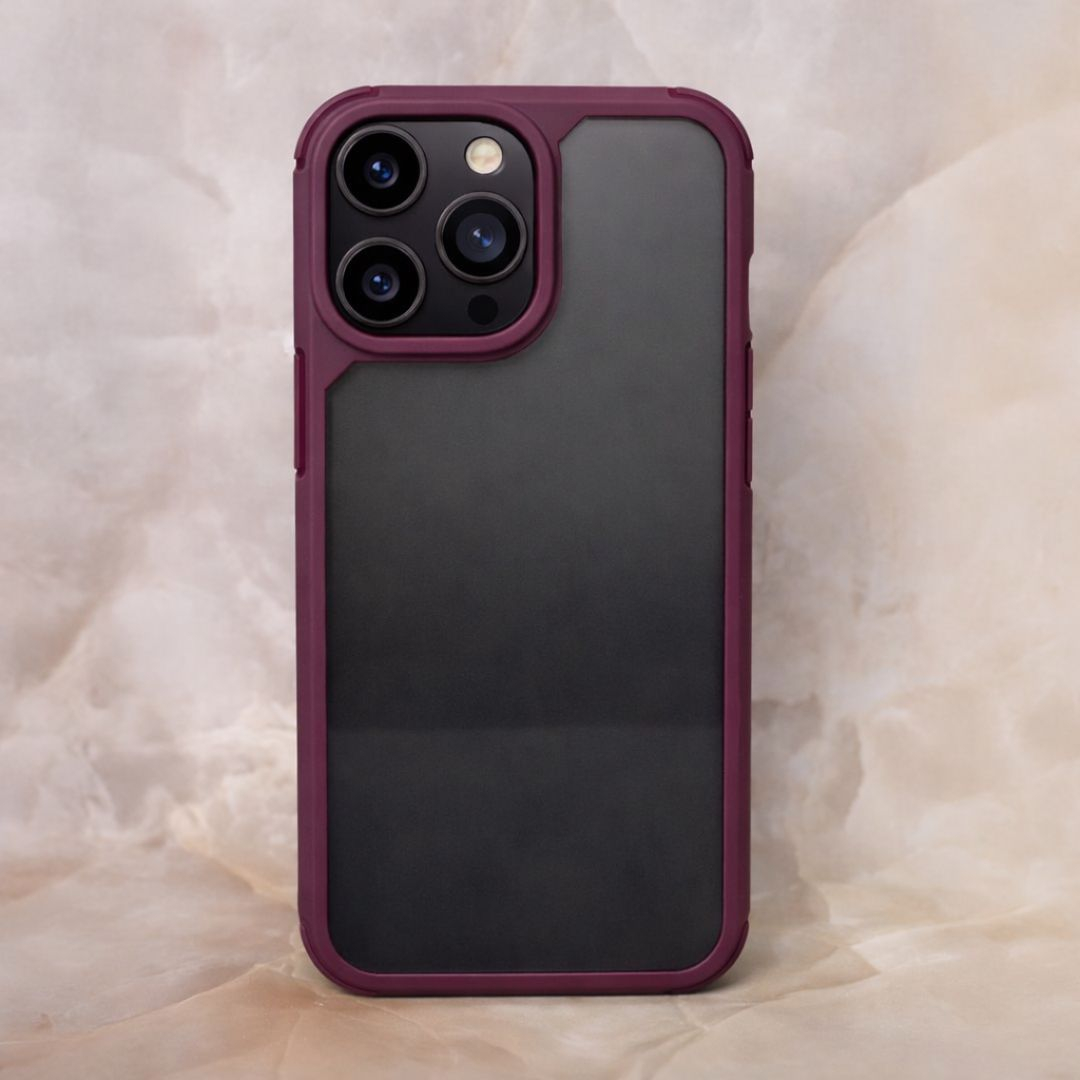 Husa pentru iPhone 14 Pro Max Color Shock pentru spate, transparenta cu margini visinii