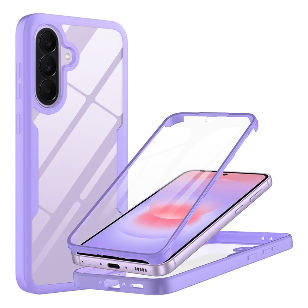 Husa Protectie 360° (Fata + Spate) pentru Samsung Galaxy A37 5G, Transparenta cu Margini Mov - Protectie Completa