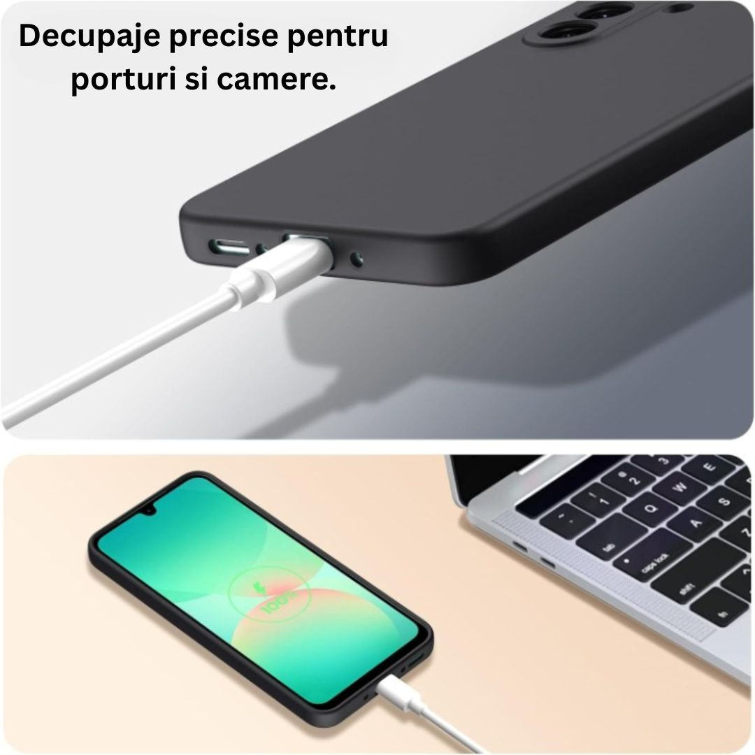 Husa din silicon catifelat cu interior din microfibra este compatibila cu Samsung Galaxy A26 si ofera o protectie eficienta, mentinand in acelasi timp un aspect elegant si rafinat. Exteriorul moale este placut la atingere, iar interiorul din microfibra delicata previne zgarieturile si pastreaza suprafata telefonului in stare impecabila.