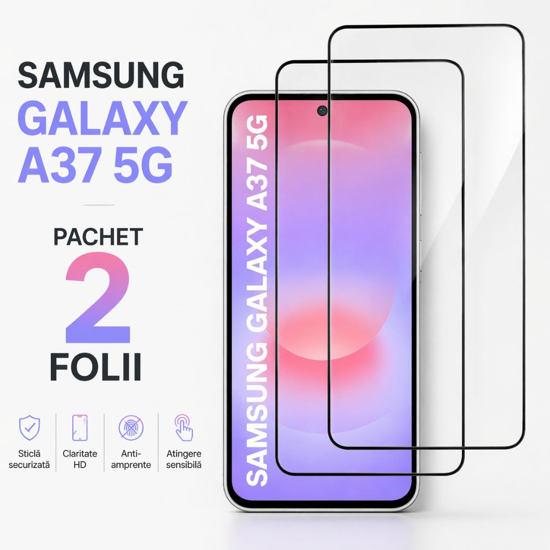 Protejează ecranul telefonului tău cu Setul de 2 Folii de Protecție din Sticlă Securizată pentru Samsung Galaxy A37 5G. Aceste folii sunt concepute pentru a oferi protecție eficientă împotriva zgârieturilor, șocurilor și uzurii zilnice, păstrând în același timp claritatea ecranului și funcționarea normală a touch-ului.
