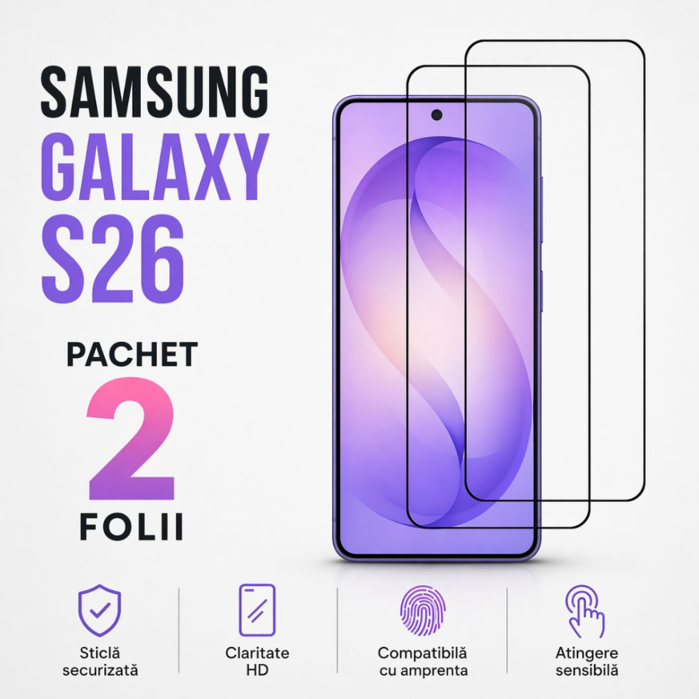 Protejează ecranul telefonului tău cu Setul de 2 Folii de Protecție din Sticlă Securizată pentru Samsung Galaxy S26. Aceste folii sunt concepute pentru a oferi protecție eficientă împotriva zgârieturilor, șocurilor și uzurii zilnice, păstrând în același timp claritatea ecranului și funcționarea normală a touch-ului.